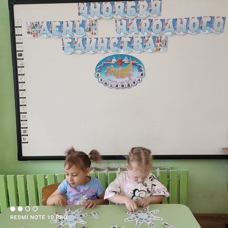 В преддверии «Дня народного единства» с целью воспитания в детях патриотических чувств, любви к Родине, гордости за ее достижения, уверенности в том, что Россия – великая многонациональная страна, с героическим прошлым и счастливым будущим. В группе «Радуга» прошли тематические мероприятия, в доступной форме дети познакомились с историей возникновения праздника, познакомились с народами, населяющими нашу страну, национальными костюмами, закрепили знания о государственном флаге. Ребята играли в национальные игры, танцевали и слушали песни о дружбе, а также сделали праздничные открытки, которые подарили своим родителям.