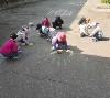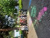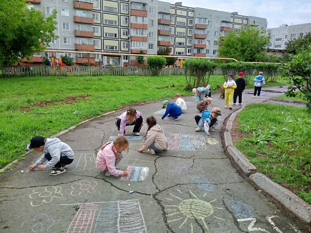 На прогулке дети рисовали мелками на асфальте замечательные флаги России.