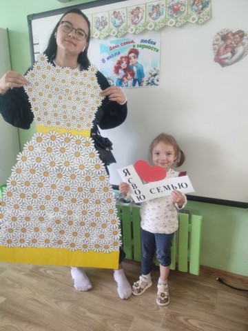 Именно в семье мы учим любви, ответственности, заботе и уважению. Поэтому этот праздник очень важен для нас. В группе «Радуга» были проведены мероприятия, посвященные этому празднику: организована сюжетно – ролевая игра «Моя семья», на занятии по аппликации сделали для мамы ромашковое платье и корзину с ромашками – символом любви и верности. Так же родители с большим удовольствием откликнулись поучаствовать в создании семейного коллажа «Моя семья».